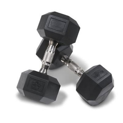 - Dumbbell for resistance training—great for arms, chest, back, core, and legs Solid cast-iron core for reliable strength; will not bend or break after repeated use Hexagon-shaped rubber-encased ends help prevent rolling and promote stay-in-place storage